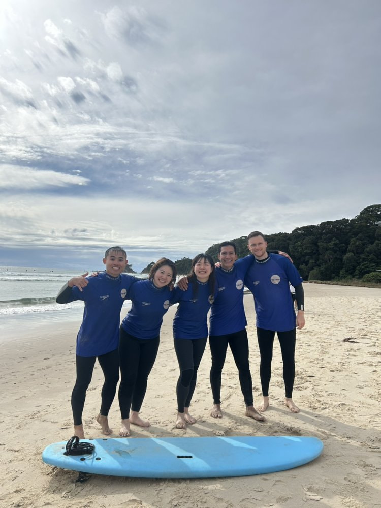 あとジムにも通っているのでトレーニングもしています!マリンスポーツも盛んで、サーフィンにも何回かチャレンジしました。まだまだ難しいけれどちょっとだけ上達しました。