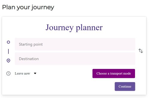 Journey Plannerで、出発地、目的地、時間等を入力して検索をすることができます。